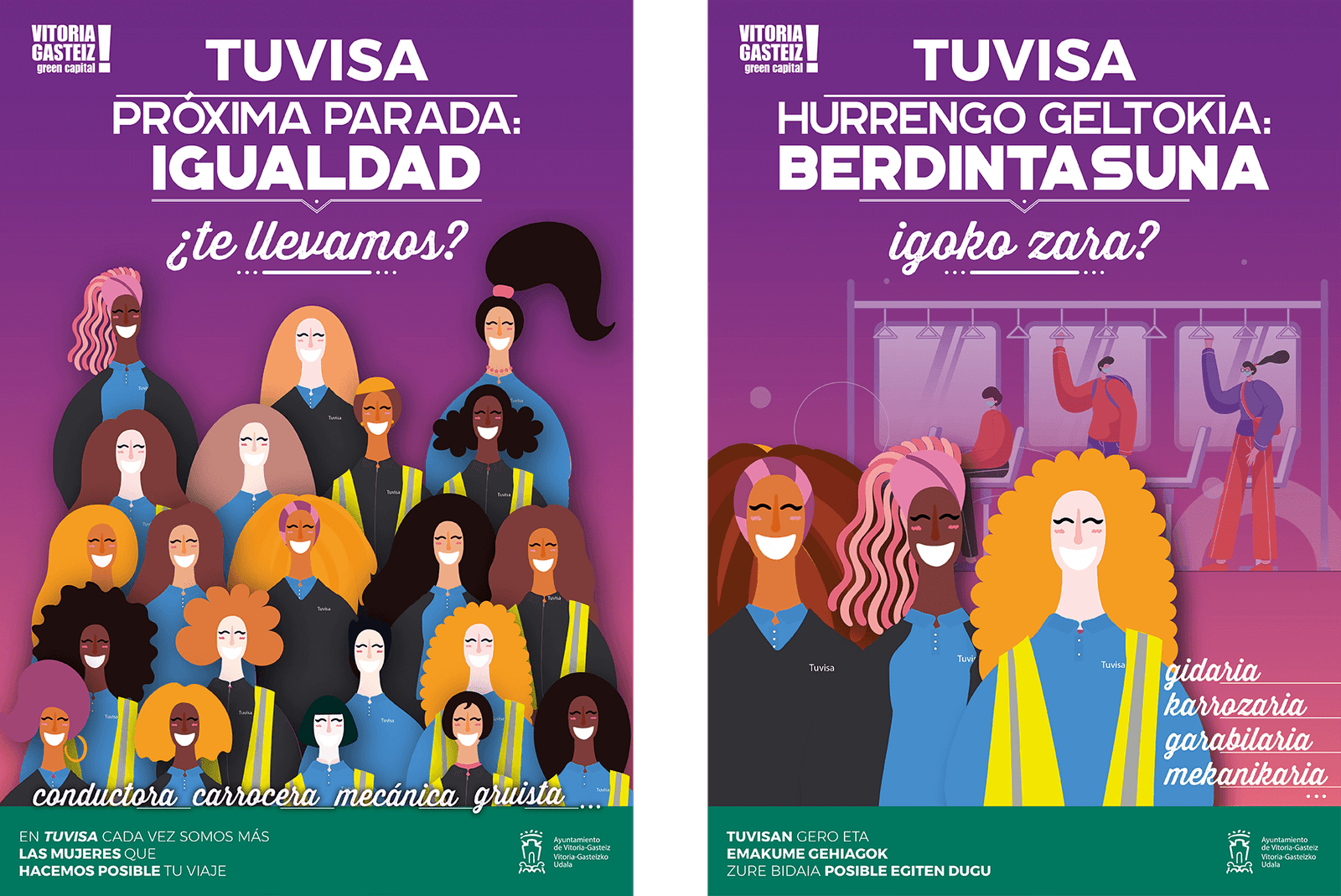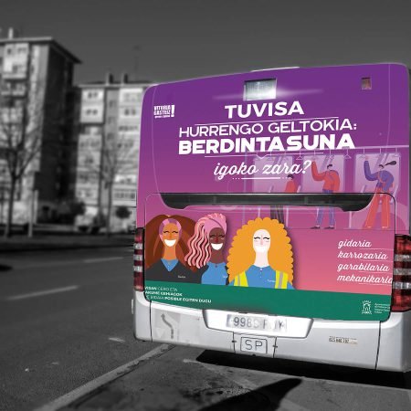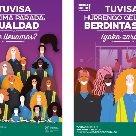 Las compañías de transporte han sido y son todavía un ámbito profesional donde existen roles aún muy vinculados a la masculinidad. La paridad de género es algo que parece aún lejano en este sector, pero se están dando grandes pasos para conseguirla y TUVISA es un ejemplo de ello. Gracias a la incorporación de cada vez más mujeres en todos los ámbitos y puestos de la empresa, TUVISA ha llegado a ser una de las empresas de transporte público con más trabajadoras en el Estado. Ya existen un gran número de mujeres desempeñando labores en puestos de trabajo muy diversos dentro del sector del transporte. Pero en funciones que habitualmente se habían asociado a hombres (por ejemplo, conductoras o mecánicas) la mujer siguen siendo minoría. Es el momento de que en este sector lleguemos a la PRÓXIMA PARADA: IGUALDAD. Esta igualdad debe provenir de una sociedad donde no haya espacios reservados para el hombre en ningún ámbito. Por ello, esta campaña quiere visibilizar el sector del transporte público como un espacio para la igualdad, reforzando el papel activo de las mujeres dentro de estas empresas. Acercar a la ciudadanía el trabajo que TUVISA está realizando en pro de la igualdad, incorporando a la mujer, no solo como conductoras, sino también como mecánicas, carroceras, gruistas, administrativas, gerentes o todos aquellos trabajos que en el transporte venían desempeñando casi exclusivamente hombres.