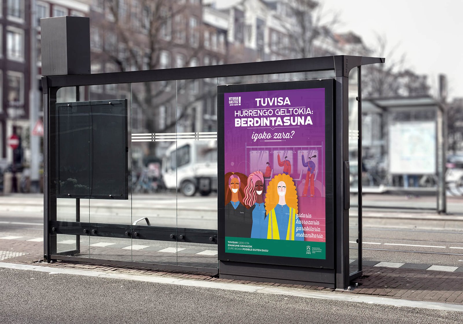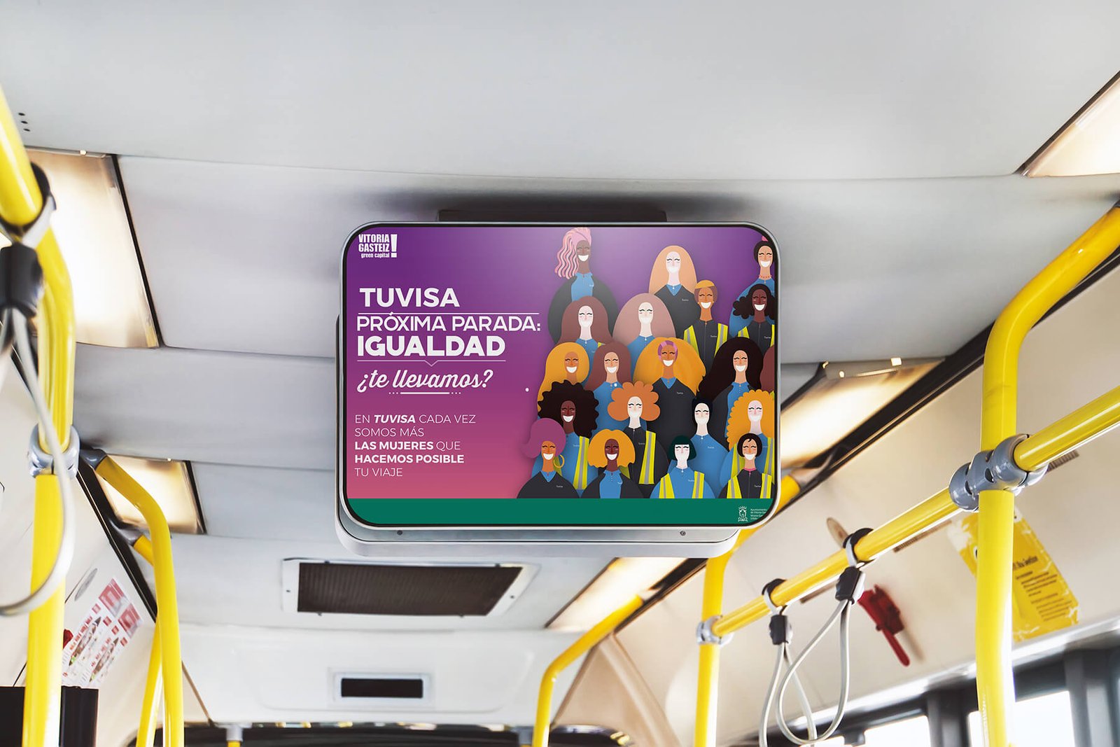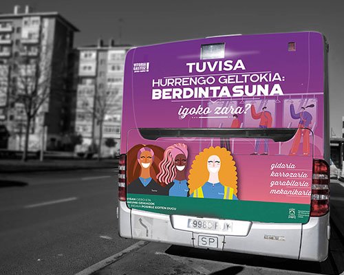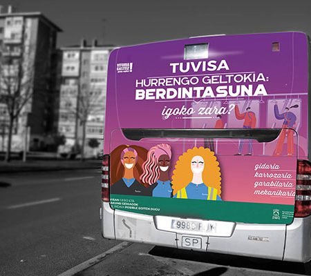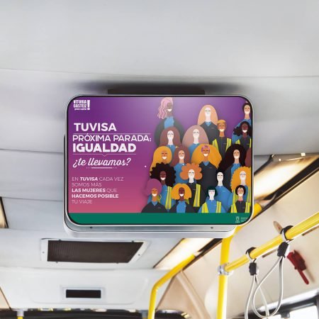 Adicionalmente, proponemos que la campaña no se limite alrededor de la fecha para la que se ha concebido, sino que tenga una continuidad y sirva como compromiso de TUVISA hacia esa igualdad a través de unos vinilos que se incorporarían a todos los autobuses y demás soportes, sin interferir con el resto de publicidad contratada.