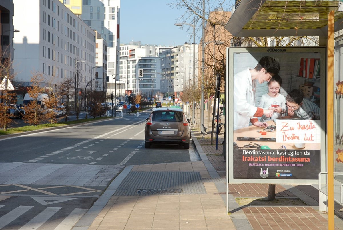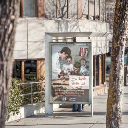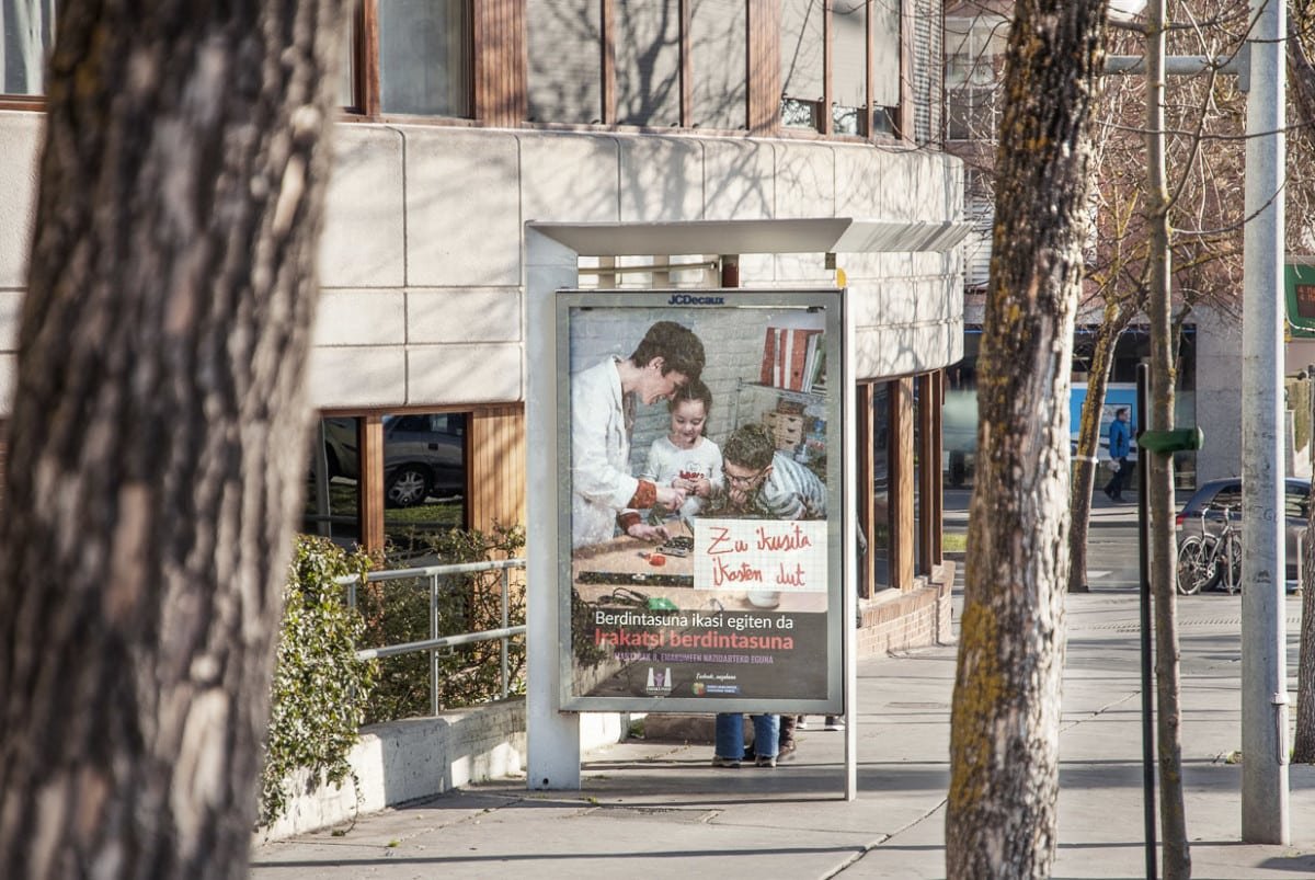 Para reforzar la idea de que los niños y la educación son los protagonistas de la campaña se han empleado varios elementos gráficos:“El principal, obviamente son la fotografías. Pero en ellos se incluyen los textos del slogan “aprendo de ti” y “zu ikusita ikasten dut”. La referencia más clara y en primera persona referida a los niños, de forma manuscrita por ellos mismo. “Al igual que las voces del spot y cuñas de radio. Ellos son los protagonistas. La referencia a la educación es fundamental en la campaña. Por lo que elementos como la pizarra o la hoja cuadriculada toman protagonismo”.