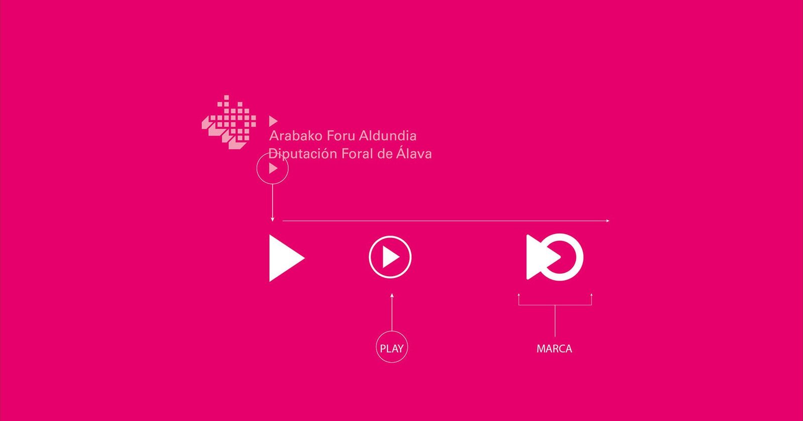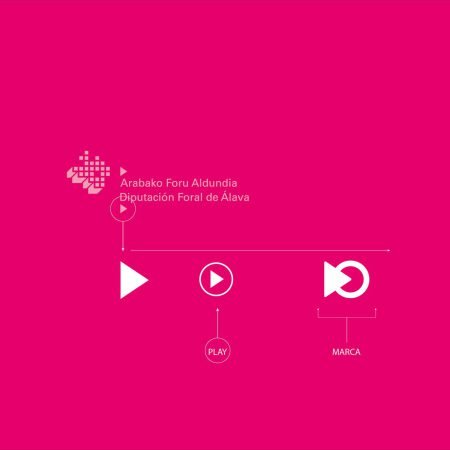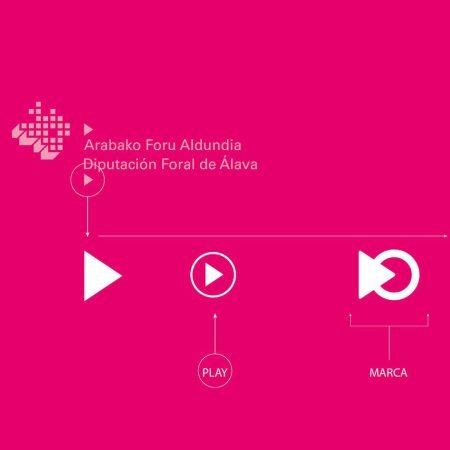 Partiendo de los triángulos que aparecen en la marca de la Diputación Foral, hemos tratado de asociarlo a la representación del icono del play, para, desde aquí, crear una marca dinámica y incentive a la acción.
