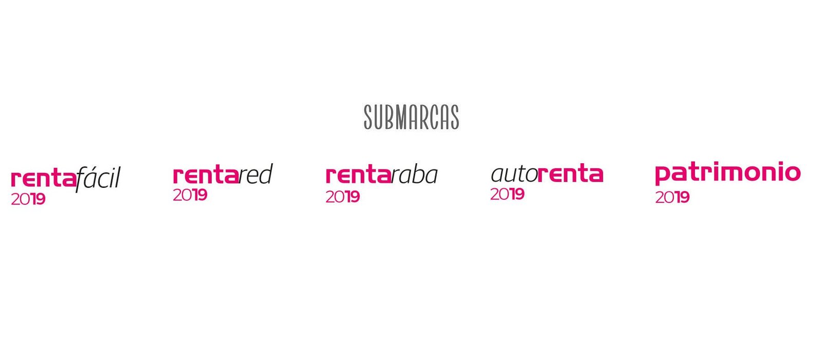 Para mantener toda la coherencia dentro de la comunicación, todas las submarcas que se desprenden de la matriz deben mantener un estilo, tanto en color, grafismo y tipografía. Aparecen siempre de la misma manera en todos los soportes en los que se vayan a utilizar, ya sean impresos o digitales.