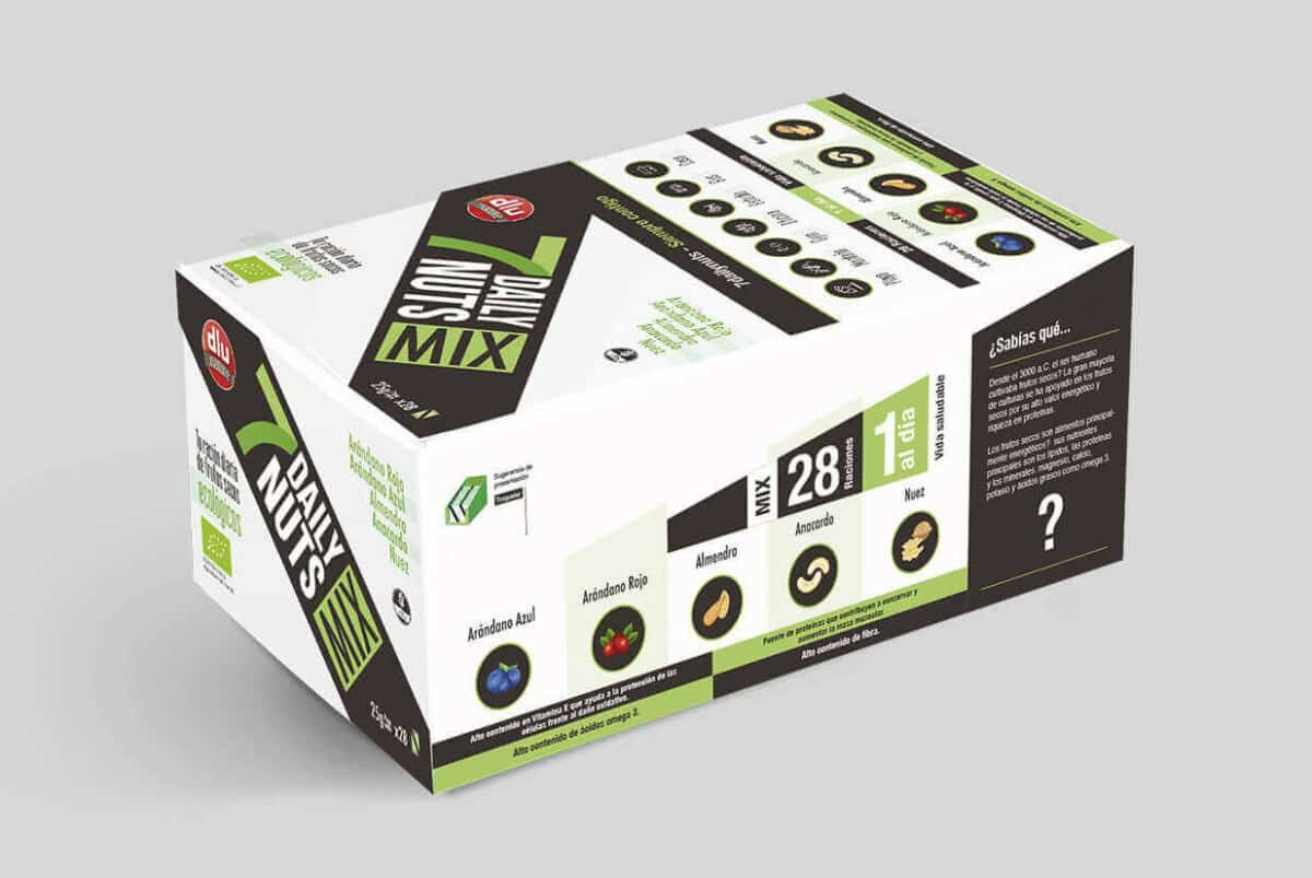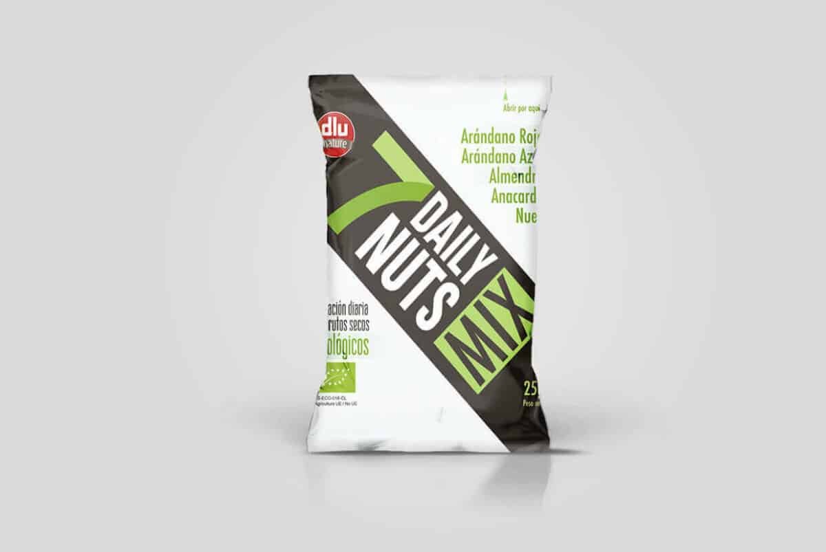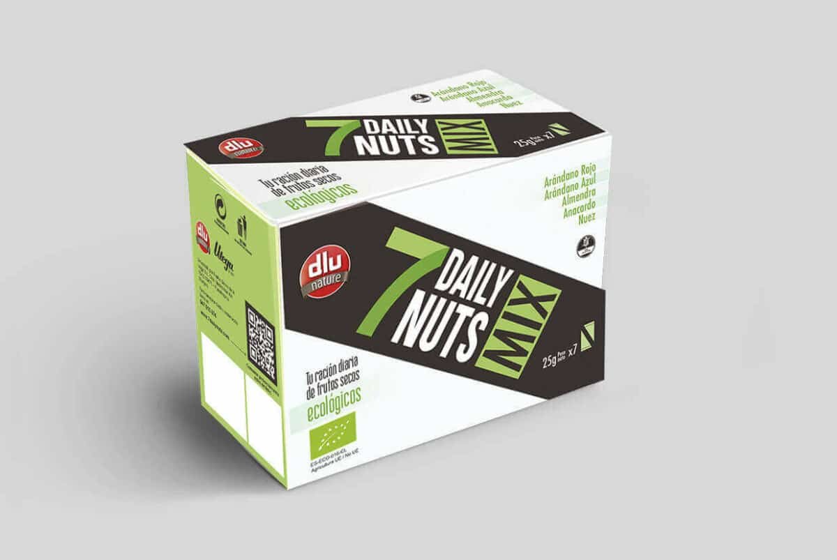 Diseño de la marca, logotipo y packaging para 7 Daily Nuts
