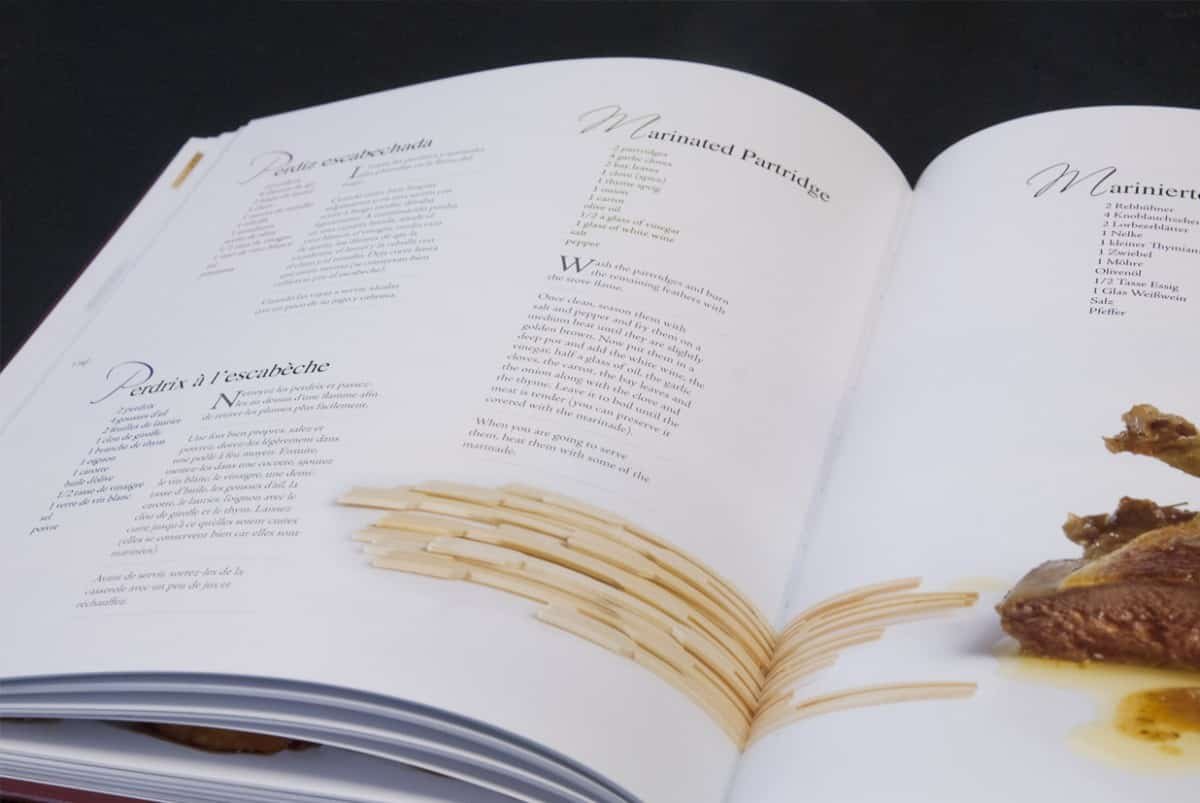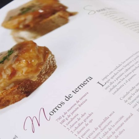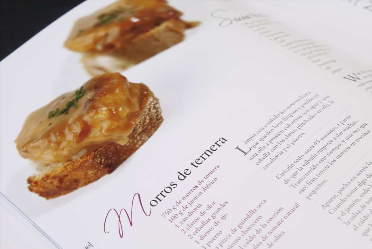 Se trata de un libro que nos muestra una parte fundamental de nuestra cocina. Nos lo muestra y lo muestra al mundo ya que está hecho en cuatro idiomas. Y precisamente este ha sido el primer reto de diseño gráfico del mismo, compatibilizar los cuatro idiomas. Hacerlos fácilmente diferenciables por lo cual se ha recurrido al color en las capitulares de cada receta. Por otro lado, se ha cuidado al extremo la fotografía. La maquetación esta al servicio de la fotografía y no al contrario. Las fotografías son integradas en el diseño de tal modo que la maquetación de cada receta es diferente.