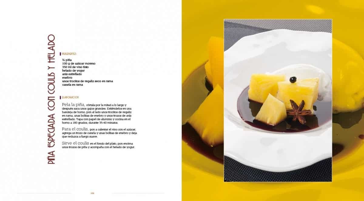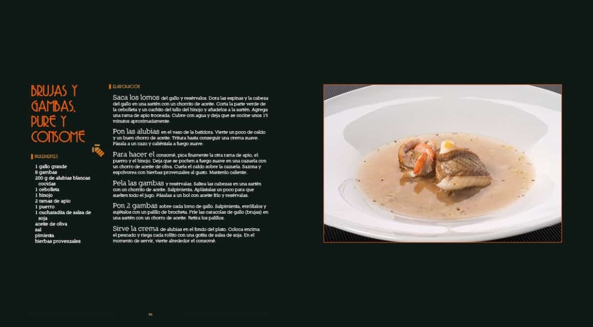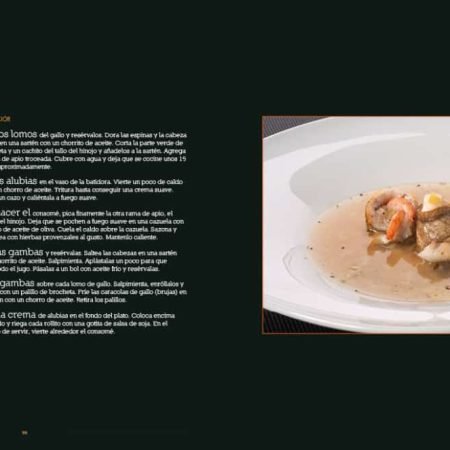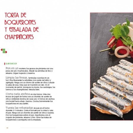 En base a estas premisas, en el diseño gráfico del libro, se ha trabajado con tratamientos particulares para cada una de las recetas. Éstos, nos ayudarán a dar dinamismo al conjunto para que los textos y todos los símbolos, tuvieran una fácil lectura e interpretación. El resultado un libro que nos invita a aventurarnos en la cocina con recetas que se salen del día a día.