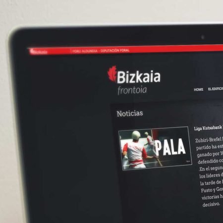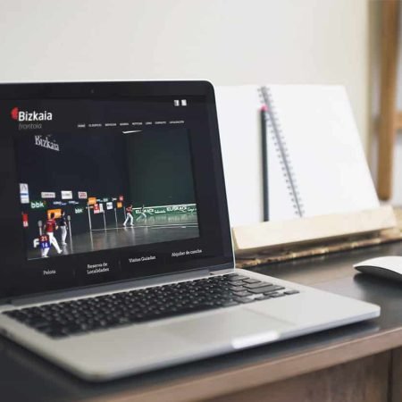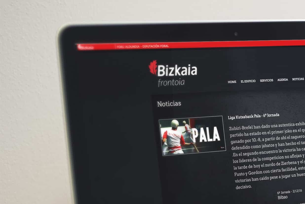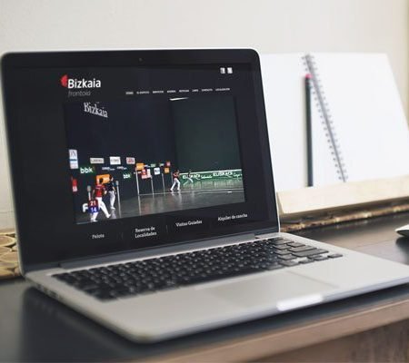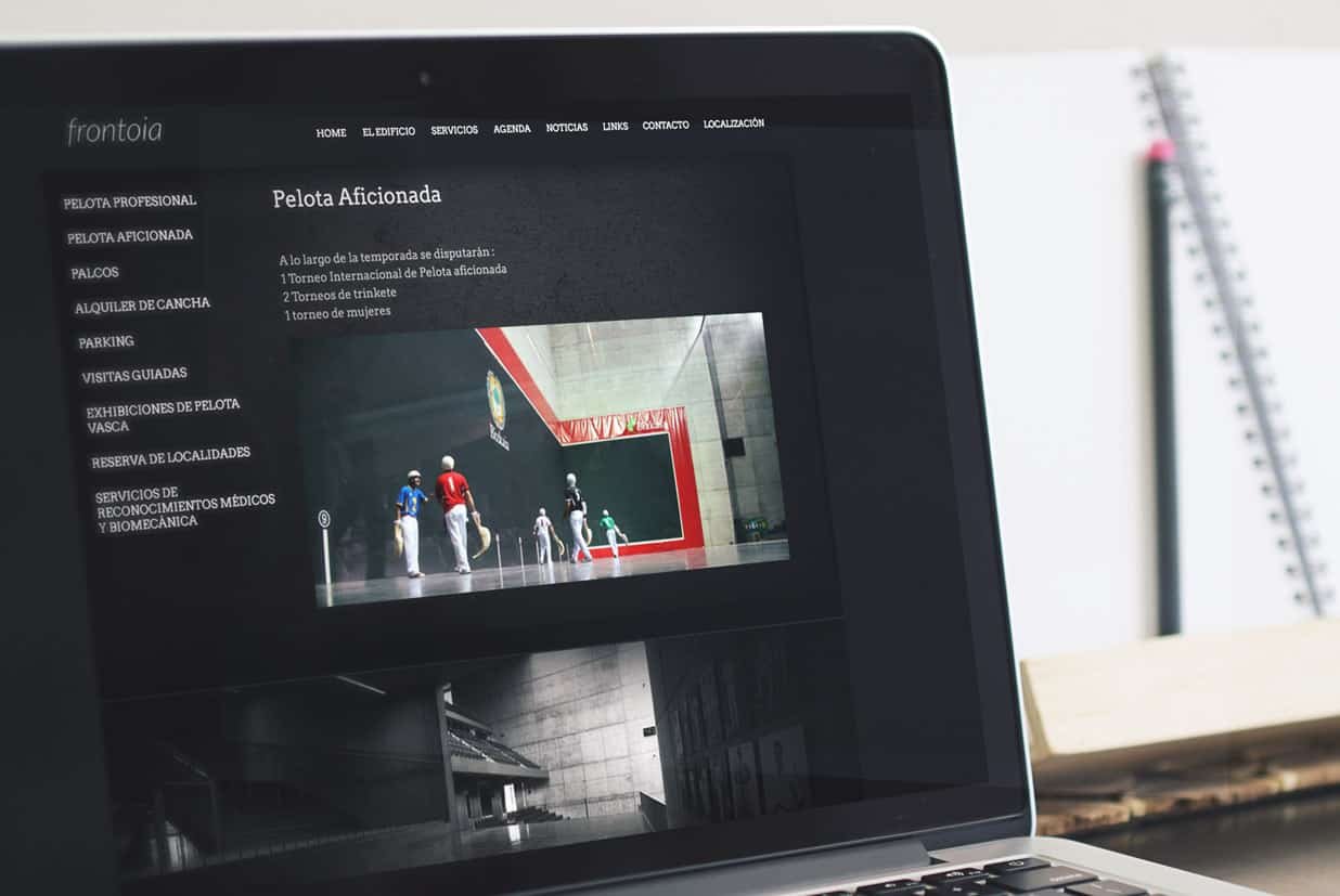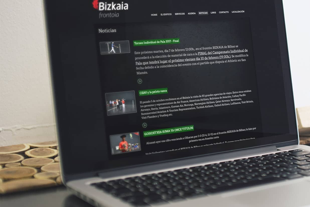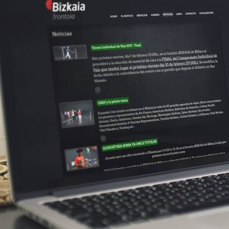 Con este proyecto se pretendía dar a conocer estas instalaciones y todas las posibilidades que ofrecían. Para ello se optó por un diseño web que intentará reflejar desde un primer momento la propia idiosincrasia de unas instalaciones únicas. Aparte de su diseño, destaca por sus formas rectas y sobre todo por el color negro. Y uniendo estas dos pautas se aposto por una página web donde el negro es dominante. Además, la primera visión nos muestra un vídeo completo de las instalaciones del Bizkaia Frontoia.