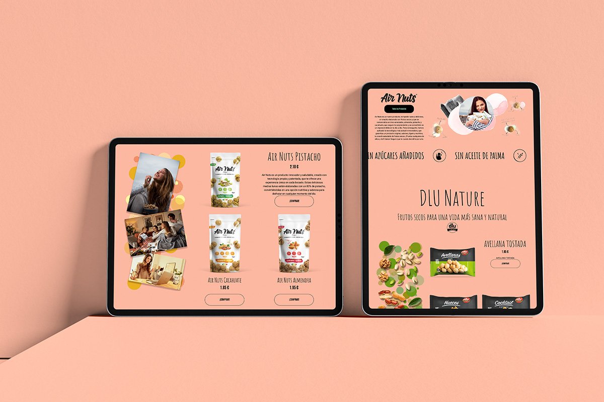 La Casa del Fruto Seco se destaca por su diseño diferenciado y llamativo, que atrae a los usuarios desde el primer momento. Combina elegancia y frescura mediante el uso de colores pastel y terciarios, creando una experiencia visual agradable y acogedora. Estos tonos suaves y atractivos no solo son agradables a la vista, sino que también ayudan a mantener la atención del usuario, fomentando una navegación prolongada y placentera por el sitio web.